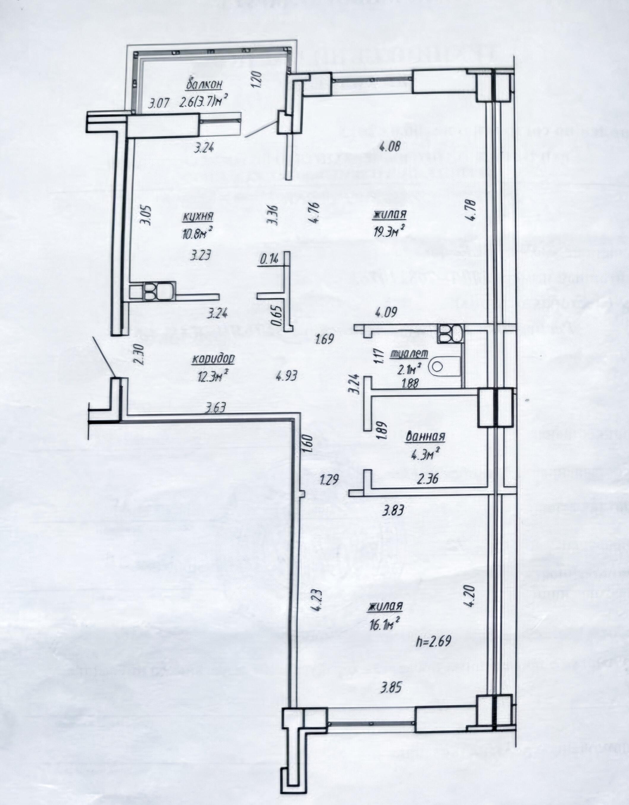 | Плошадь общая / жилая / кухня | 64.9 / 35.4 / 10.8 кв.м. |